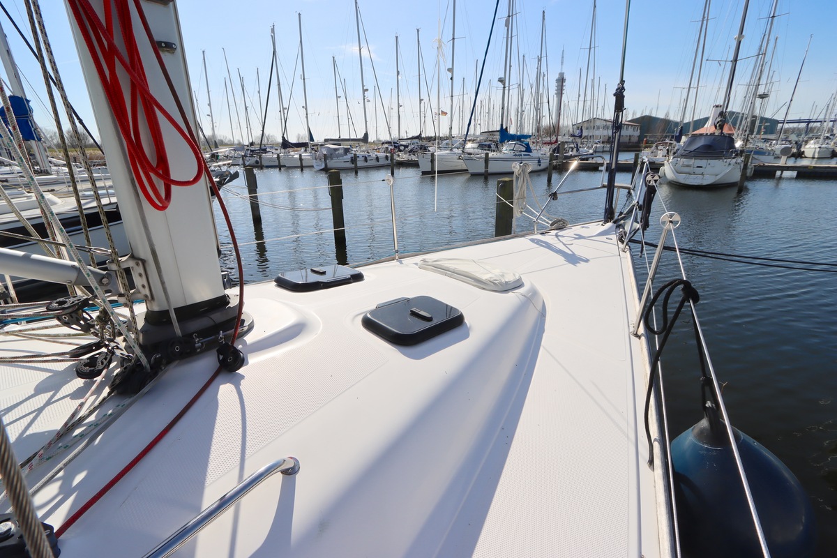 Schneller Service kräftiger Körperbau Die Salona 37 kommt mit den Kräften intensiven Segelns mühelos zurecht. Die Yacht reagiert sofort auf kleinste Trimmänderungen und ist mit hochwertigen Decksbeschlägen und Winden ausgestattet, perfekt für Solo- und Crew-Reisen.