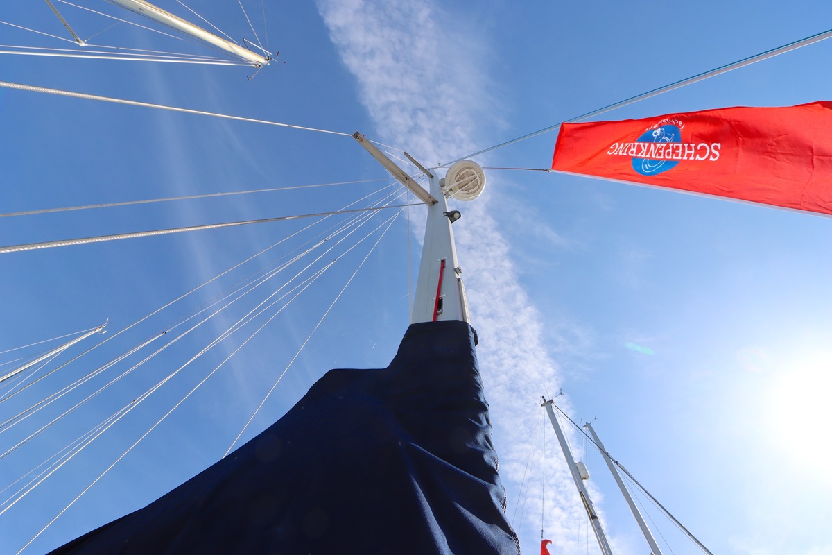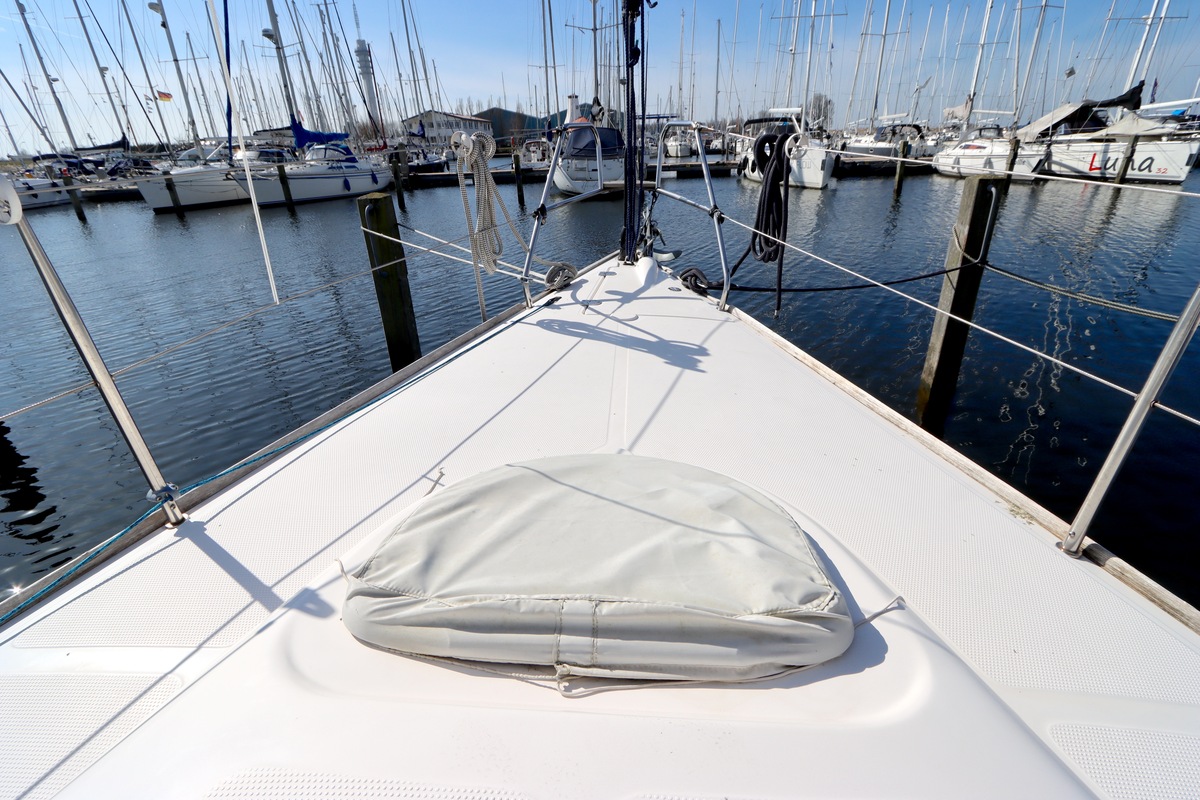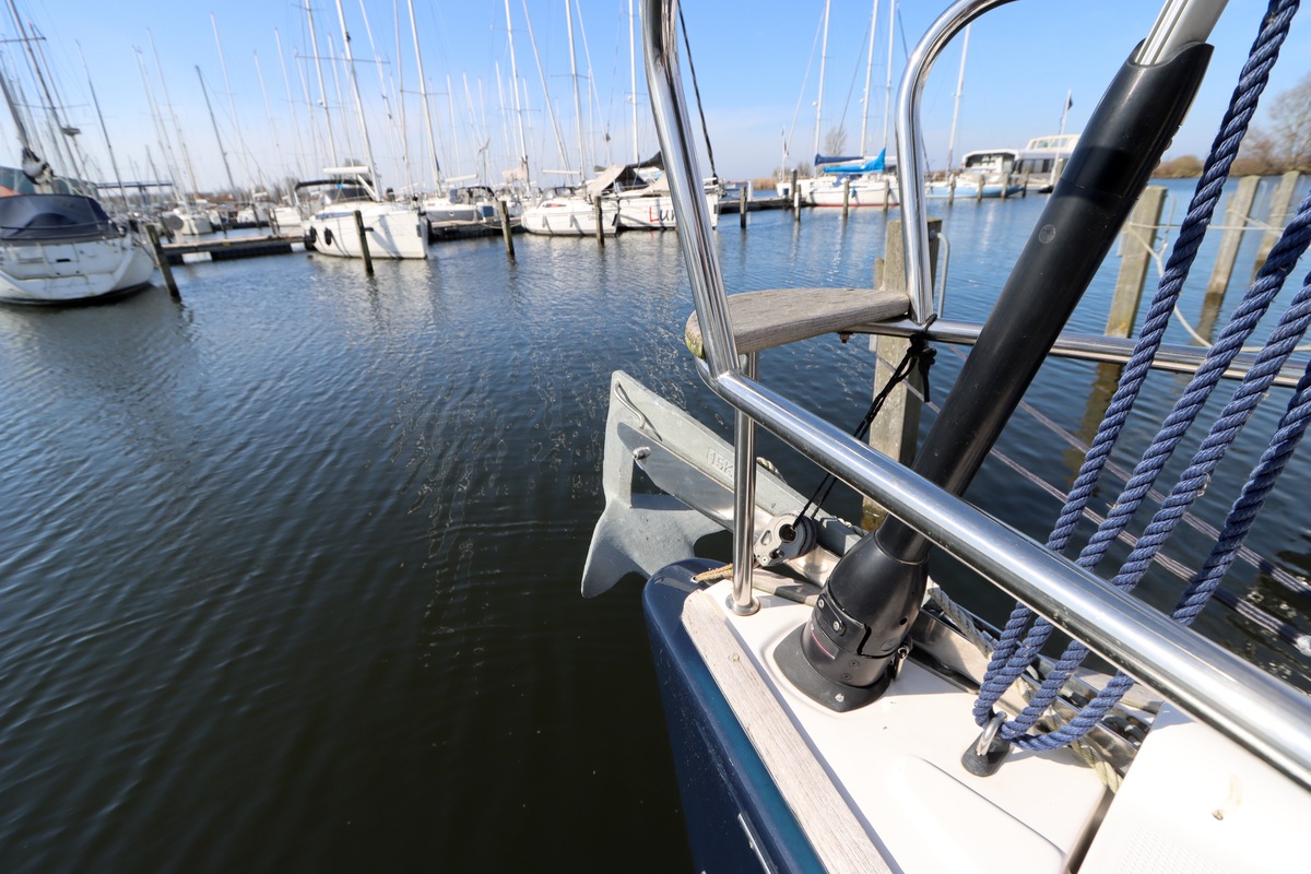 Bruce-Anker am Bug mit elektrischer Ankerwinde und tiefer Klüse.