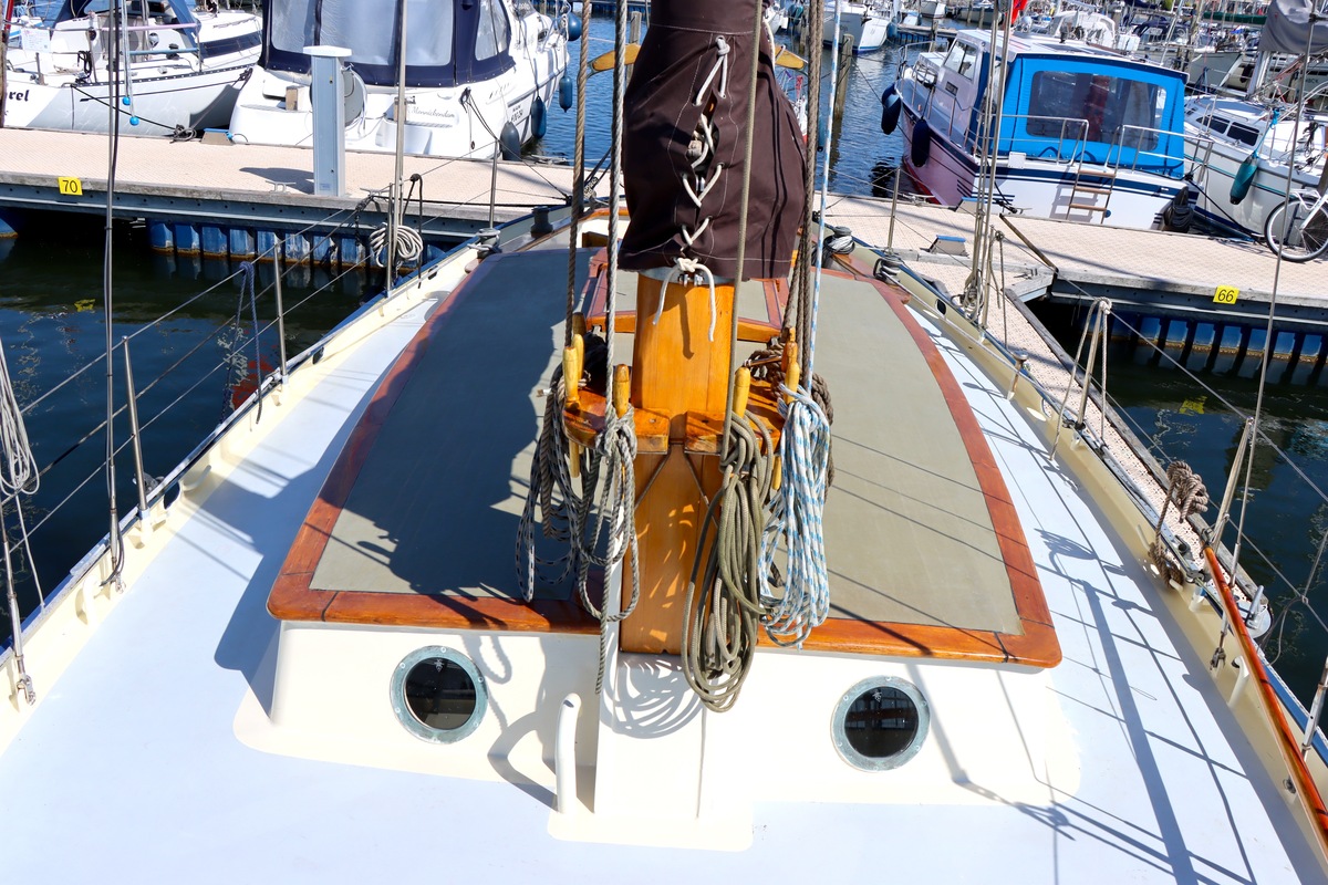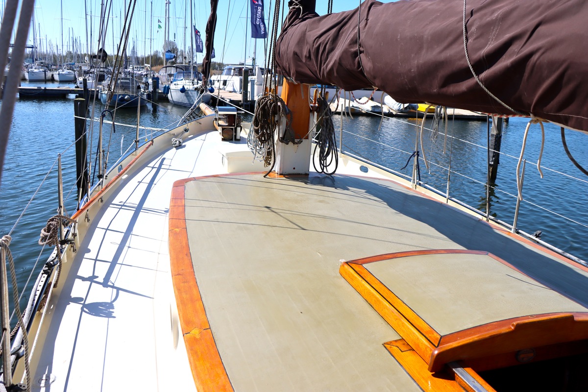 Dieser spezielle Colin Archer atmet Tradition und Handwerkskunst. Der solide gebaute Rumpf und das charakteristische runde Heck verleihen ihr den klassischen Look, auf den sich Enthusiasten verlieben. Die Takelage ist traditionell und solide, genau wie es sich für ein Schiff mit so viel Geschichte gehört.