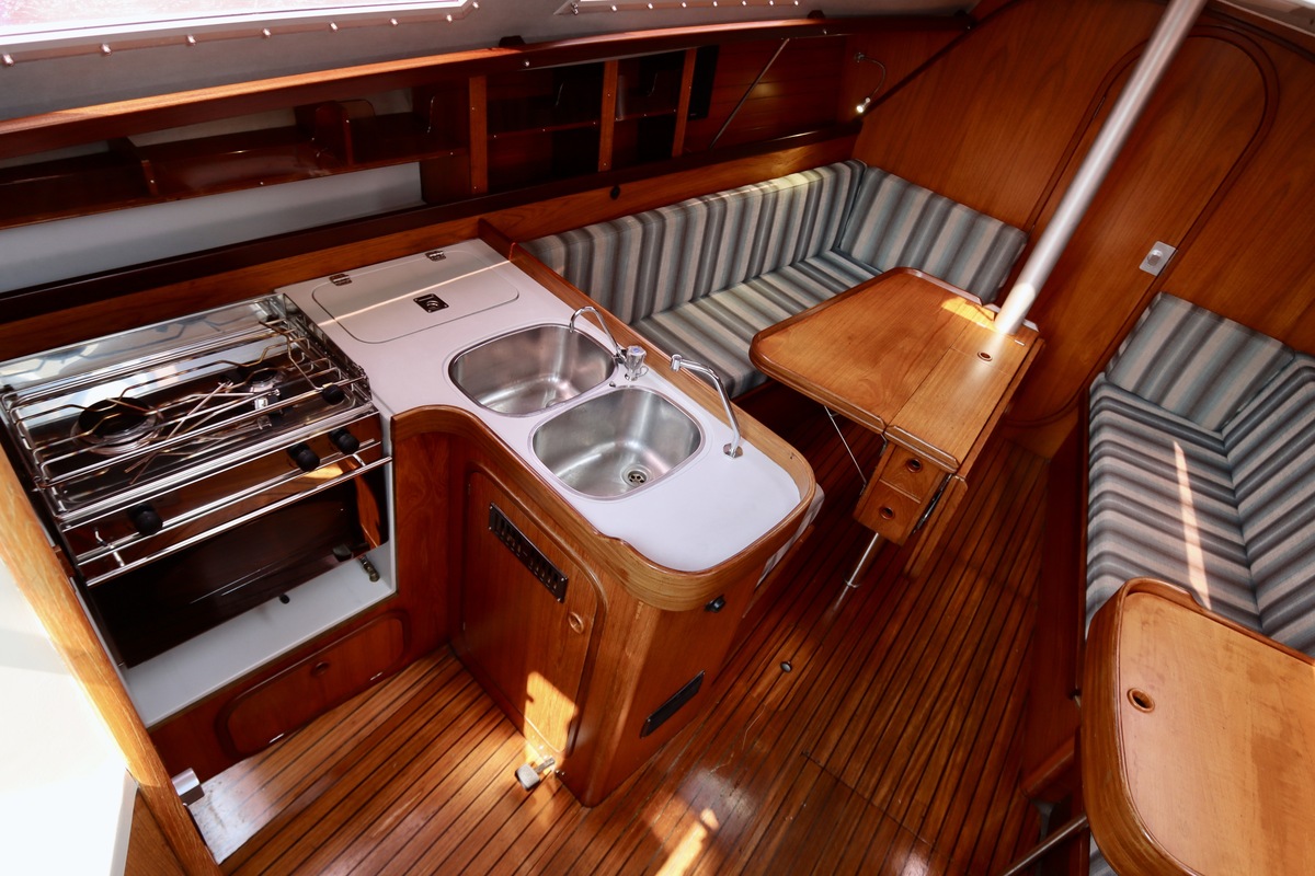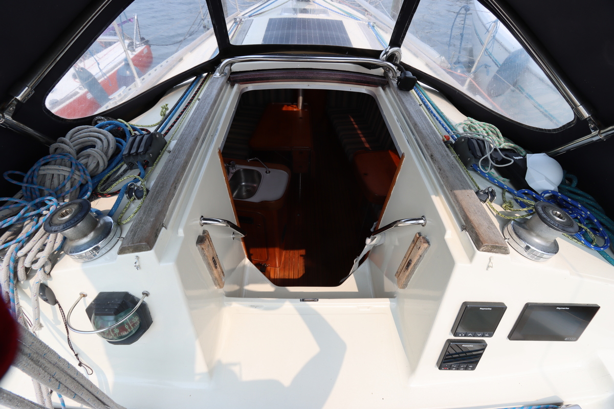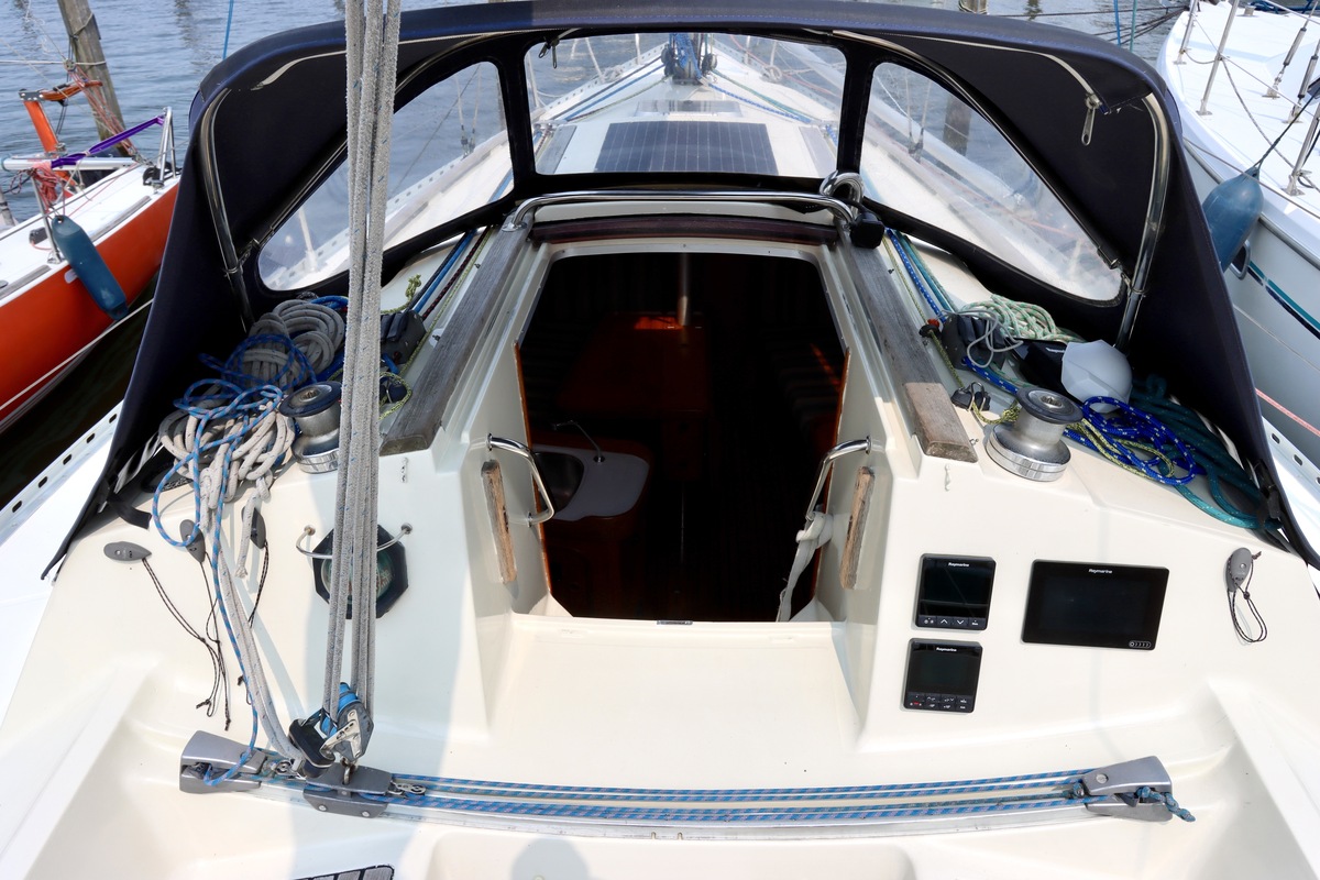 Darüber hinaus verfügt das Boot über einen Victron 312 Batteriemonitor, eine neue Starterbatterie (2022) und Servicebatterien (2021). Fock und Rollreffanlage stammen aus dem Jahr 2020. Die Navigationsausrüstung stammt von Raymarine (2022), einschließlich Axiom-Plotter und Autopilot EV-100.