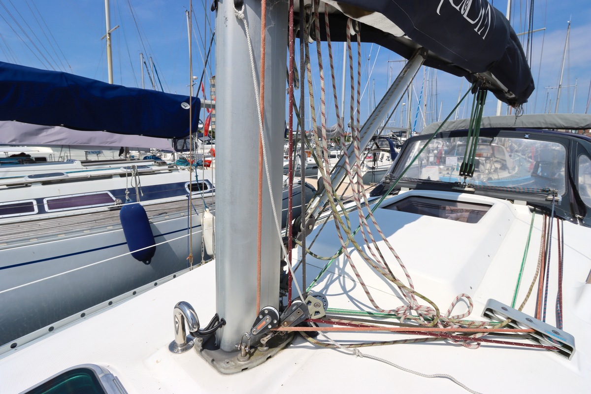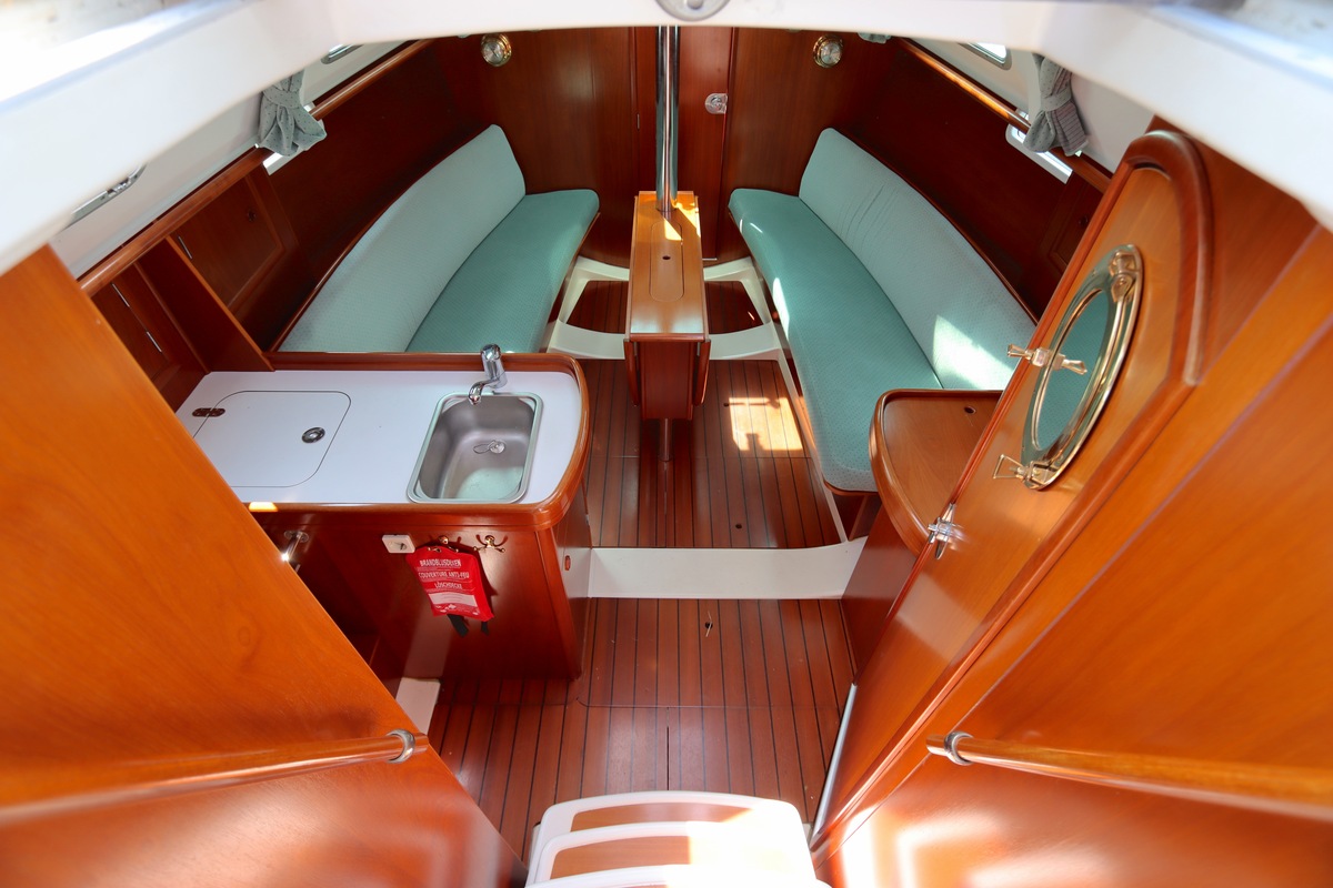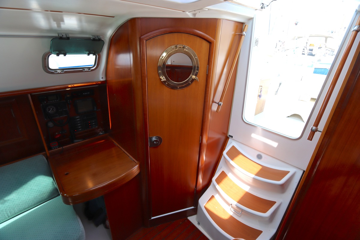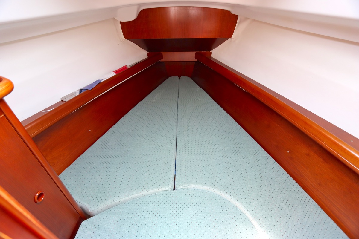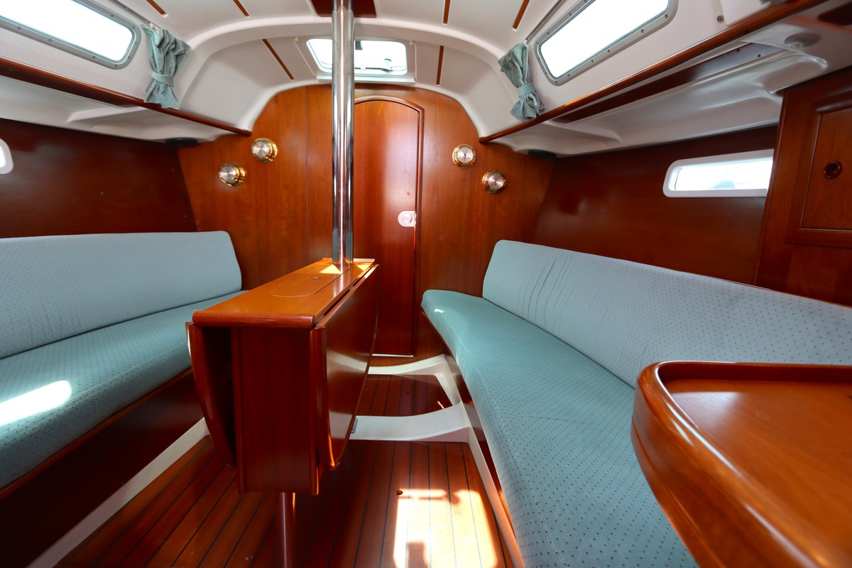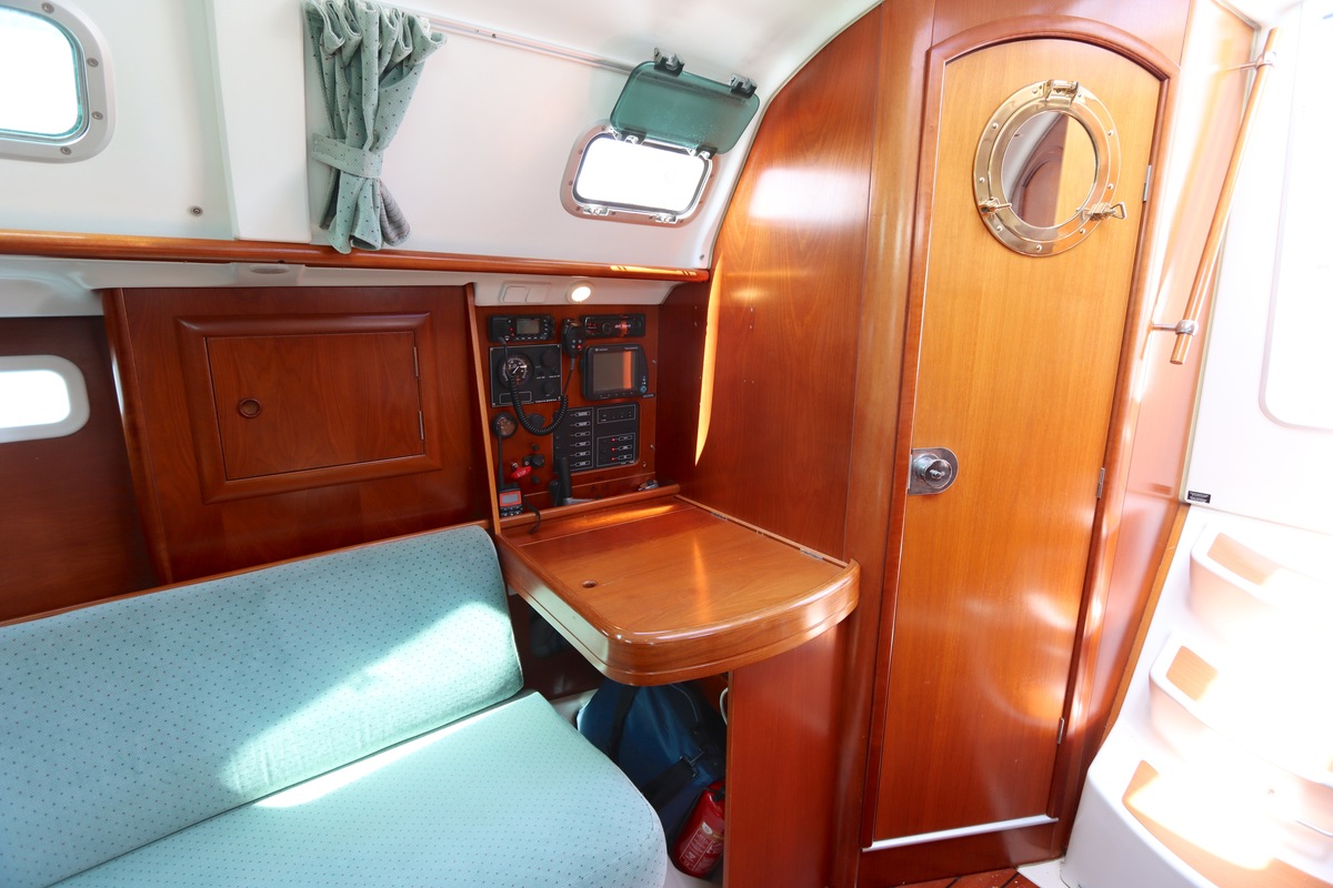 Mit zwei Kabinen, sechs Kojen und einem warmen, klassischen Look ist dieses Schiff ideal für den Urlaub. Das Boot ist gut ausgestattet mit einem Volvo Penta 19 PS-Motor, B&G-Elektronik, Autopilot, AIS, Bimini (2022), Cockpitzelt und Rettungsinsel. Dank ihrer praktischen Größe ist sie auch mit einer kleinen Besatzung leicht zu handhaben.