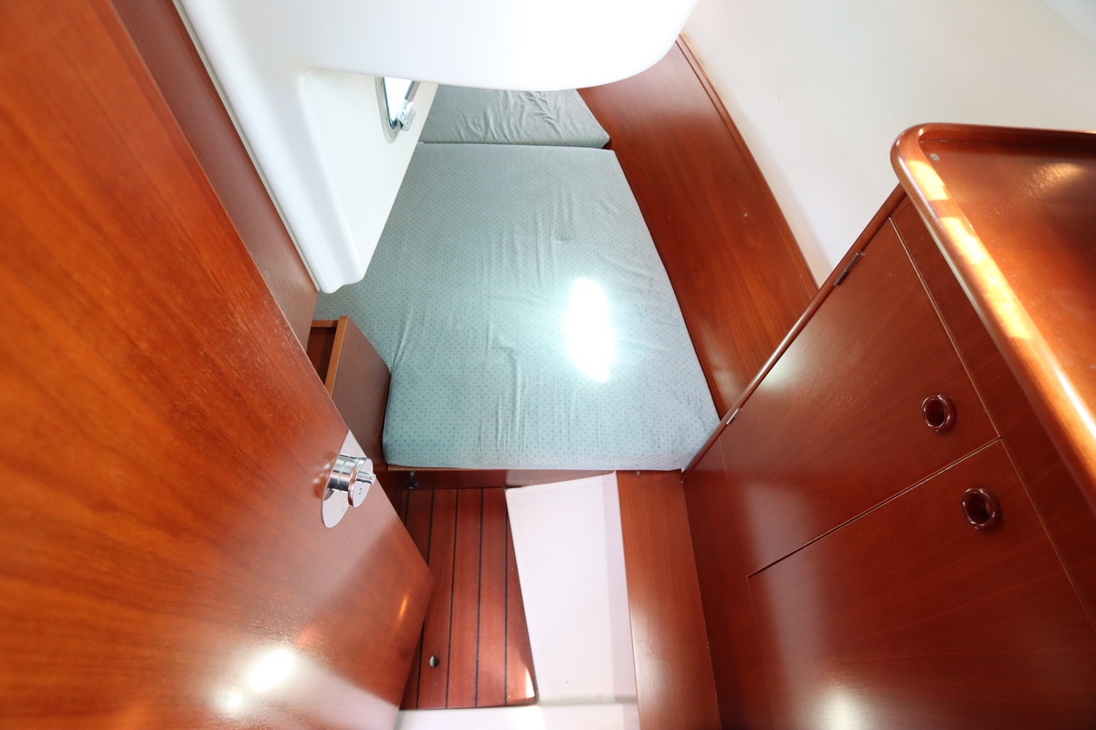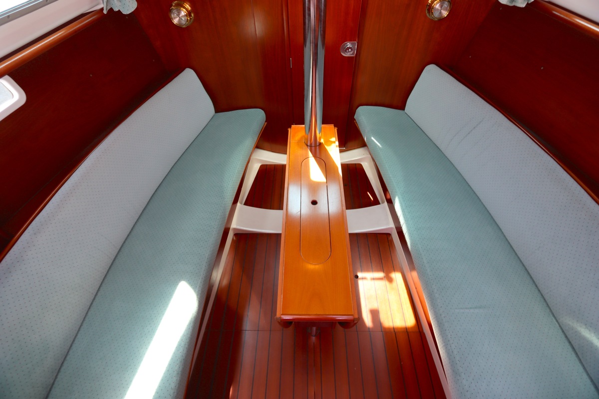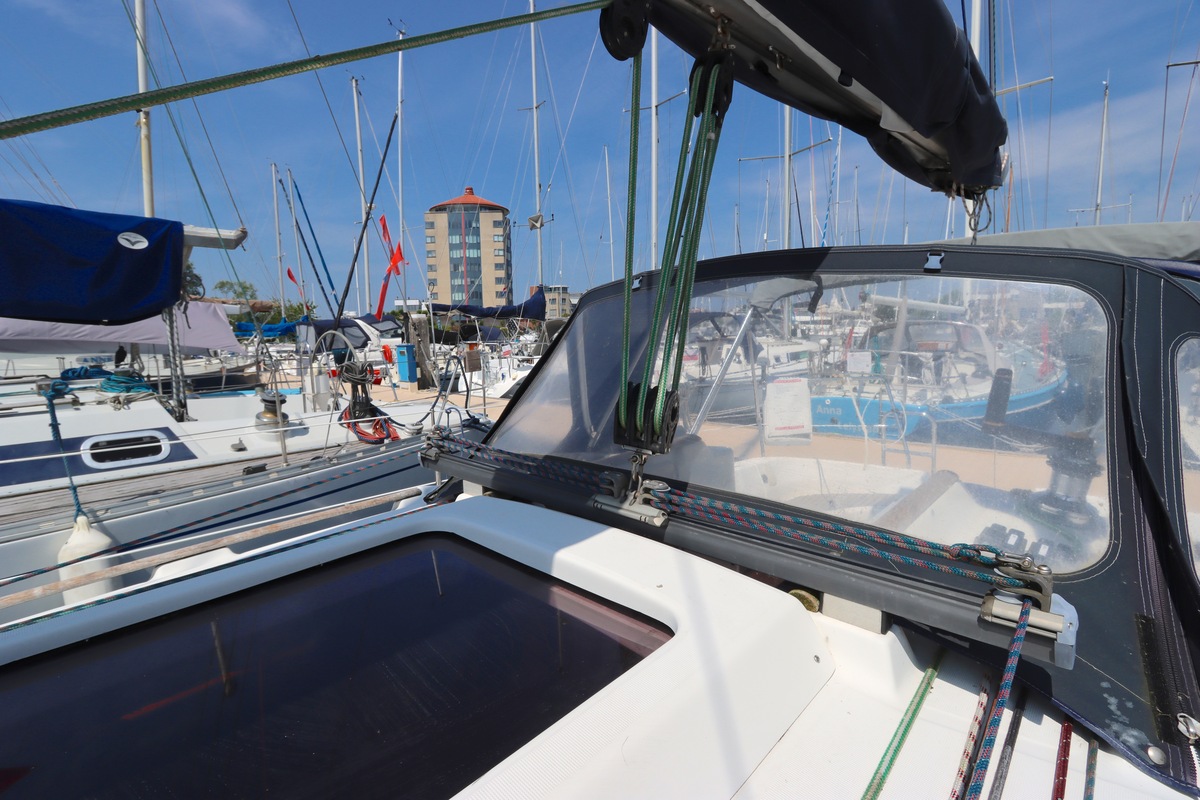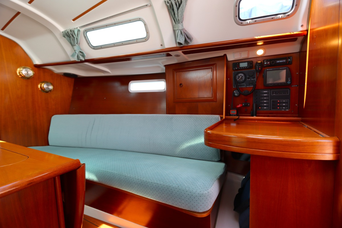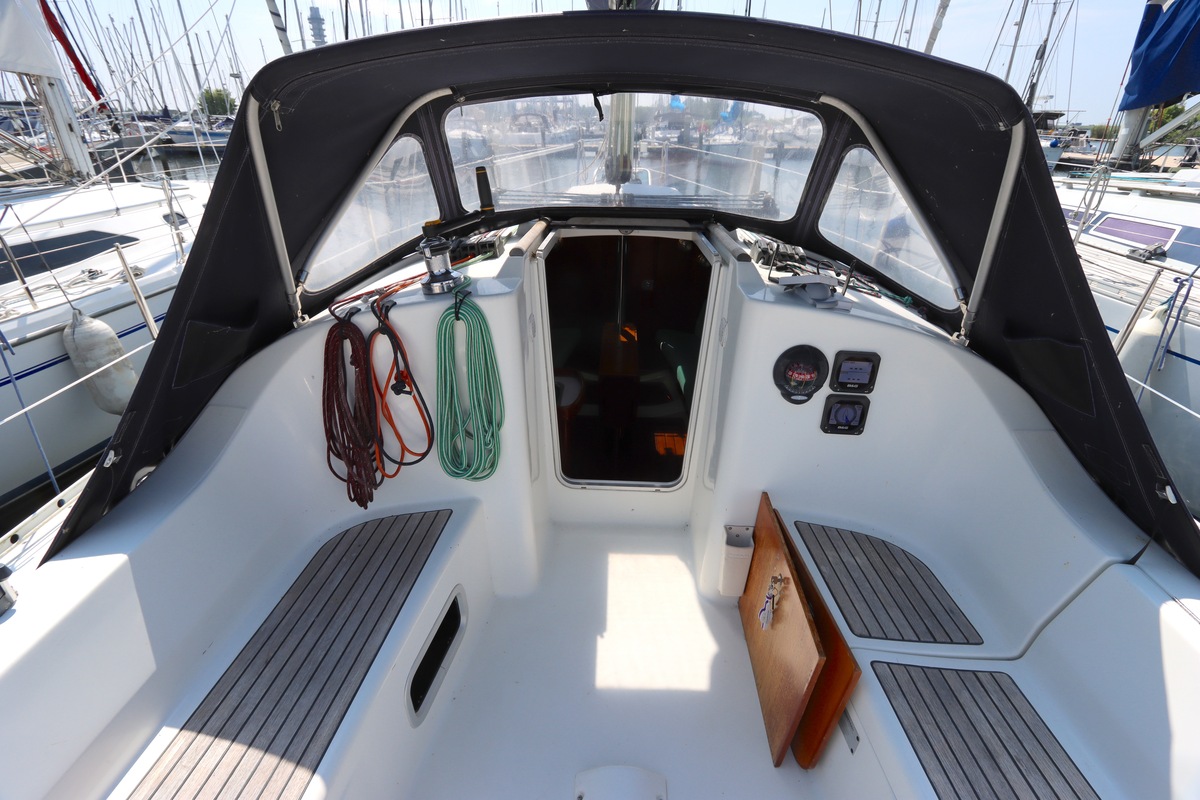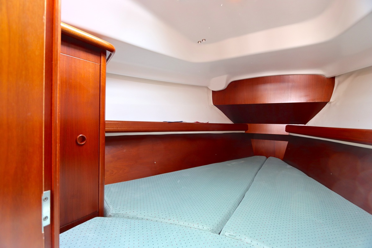 Mit zwei Kabinen, sechs Kojen und einem warmen, klassischen Look ist dieses Schiff ideal für den Urlaub. Das Boot ist gut ausgestattet mit einem Volvo Penta 19 PS-Motor, B&G-Elektronik, Autopilot, AIS, Bimini (2022), Cockpitzelt und Rettungsinsel. Dank ihrer praktischen Größe ist sie auch mit einer kleinen Besatzung leicht zu handhaben.