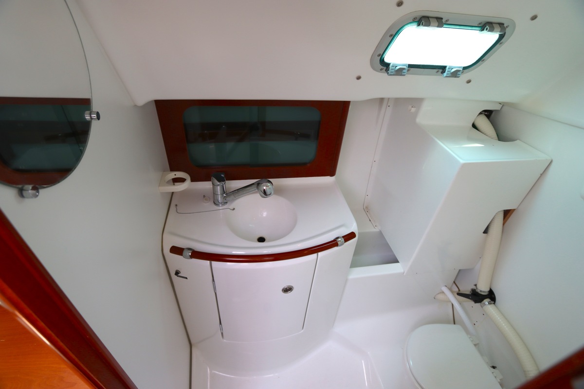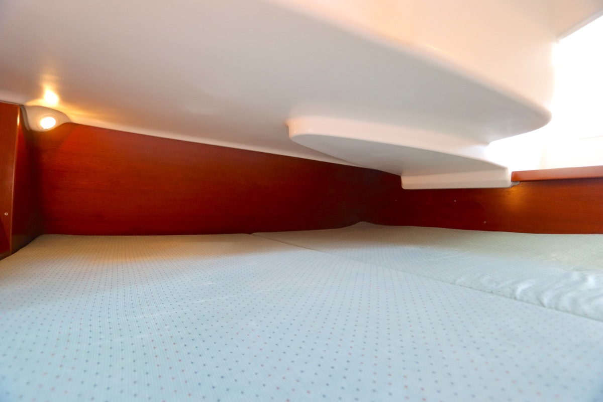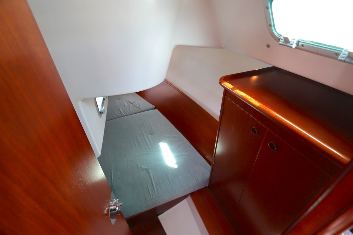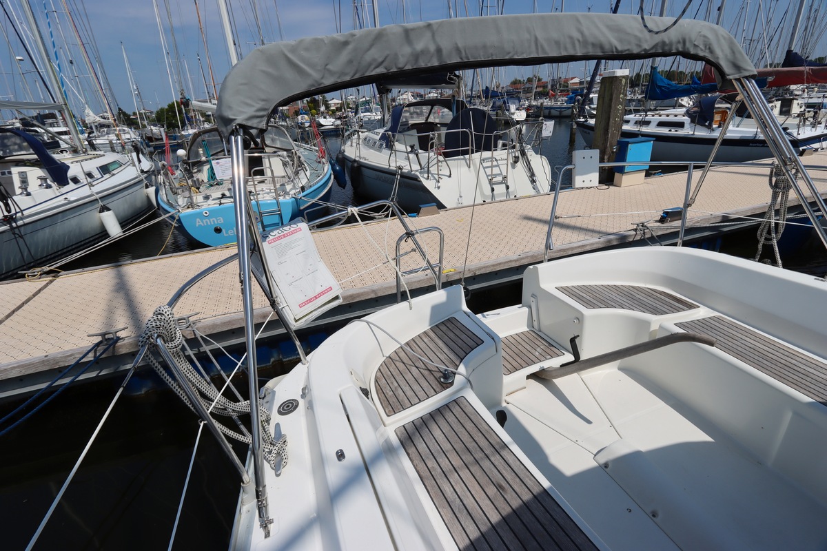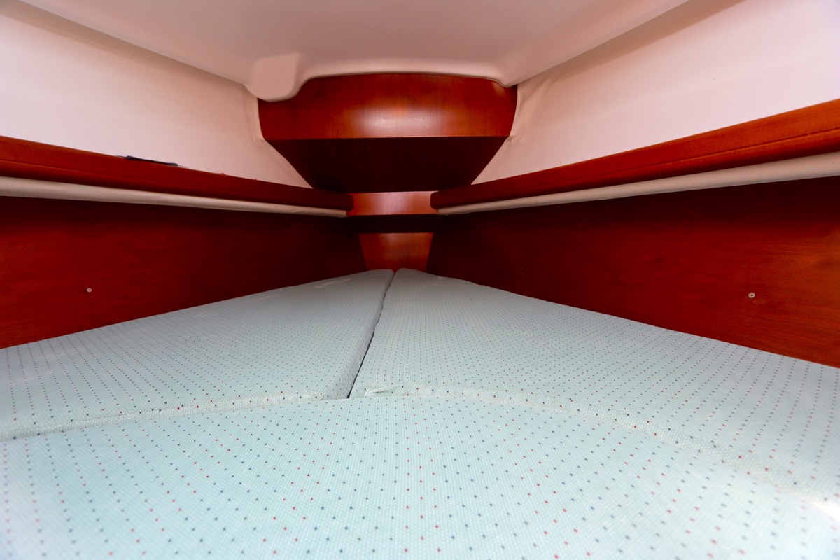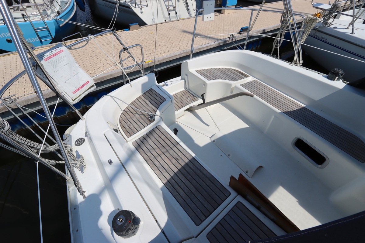 Mit zwei Kabinen, sechs Kojen und einem warmen, klassischen Look ist dieses Schiff ideal für den Urlaub. Das Boot ist gut ausgestattet mit einem Volvo Penta 19 PS-Motor, B&G-Elektronik, Autopilot, AIS, Bimini (2022), Cockpitzelt und Rettungsinsel. Dank ihrer praktischen Größe ist sie auch mit einer kleinen Besatzung leicht zu handhaben.