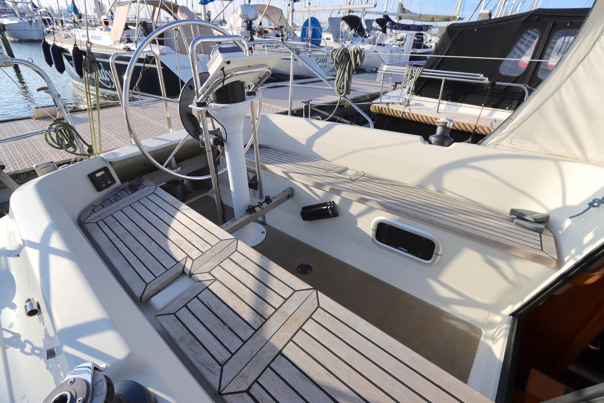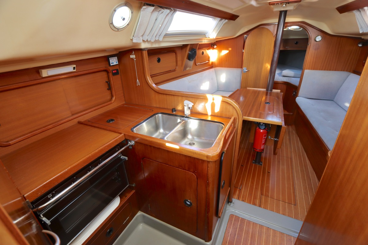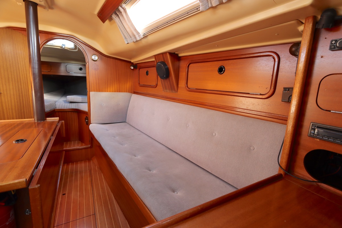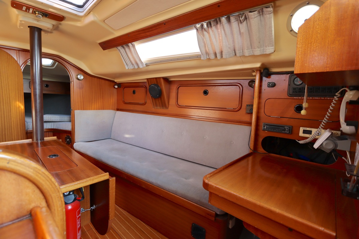 Das Navigationssystem wurde 2018 auf ein komplettes Raymarine i70-System aufgerüstet und garantiert so modernes und zuverlässiges Segeln. Im Inneren erwartet Sie ein warmes, klassisches Ambiente mit Mahagoni und einem gepflegten Teakholzboden. Der Yanmar 2GM20 mit 1820 Betriebsstunden läuft ruhig und zuverlässig.