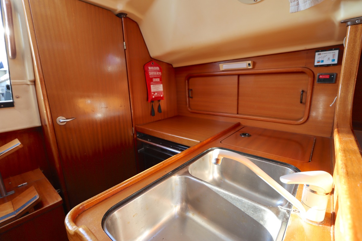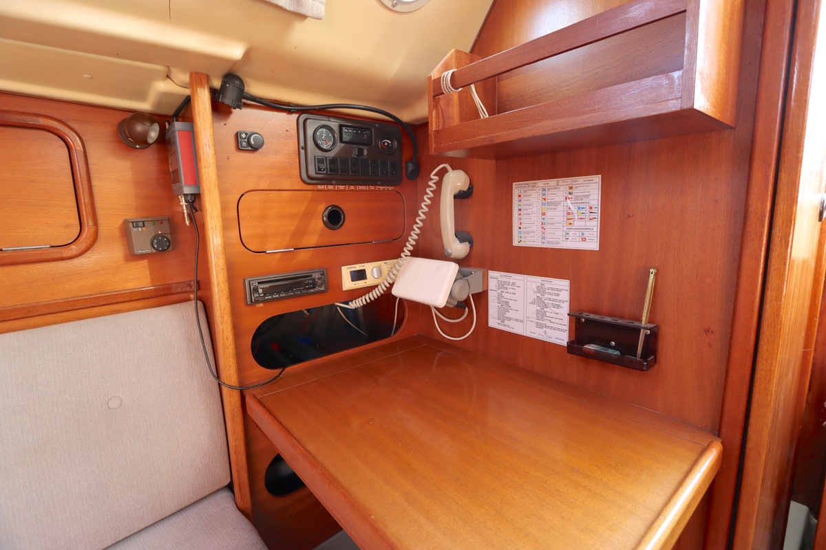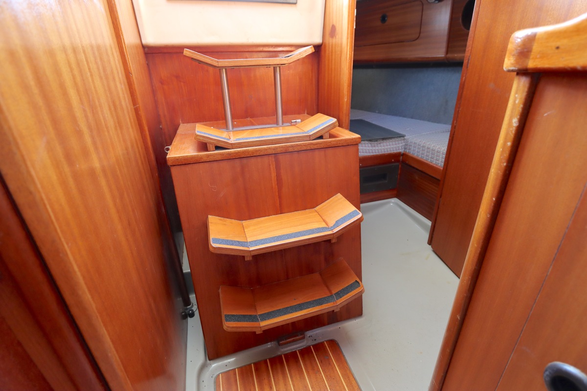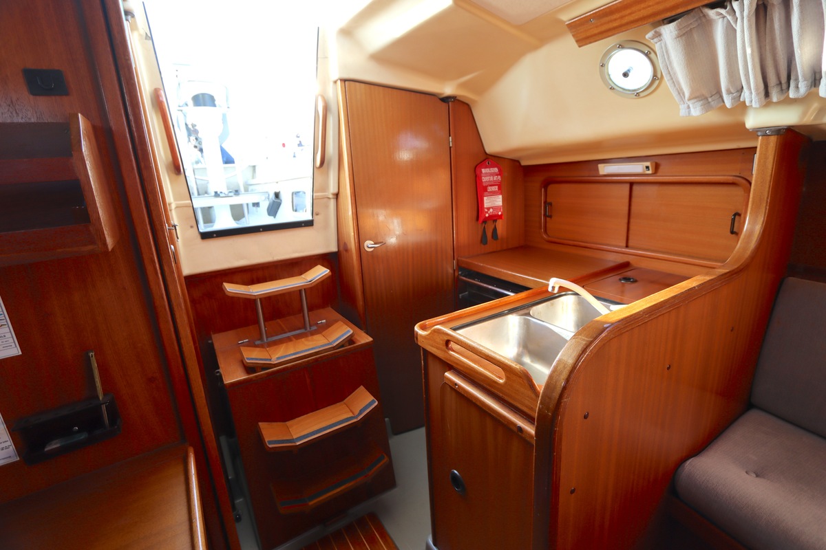 Das Navigationssystem wurde 2018 auf ein komplettes Raymarine i70-System aufgerüstet und garantiert so modernes und zuverlässiges Segeln. Im Inneren erwartet Sie ein warmes, klassisches Ambiente mit Mahagoni und einem gepflegten Teakholzboden. Der Yanmar 2GM20 mit 1820 Betriebsstunden läuft ruhig und zuverlässig.