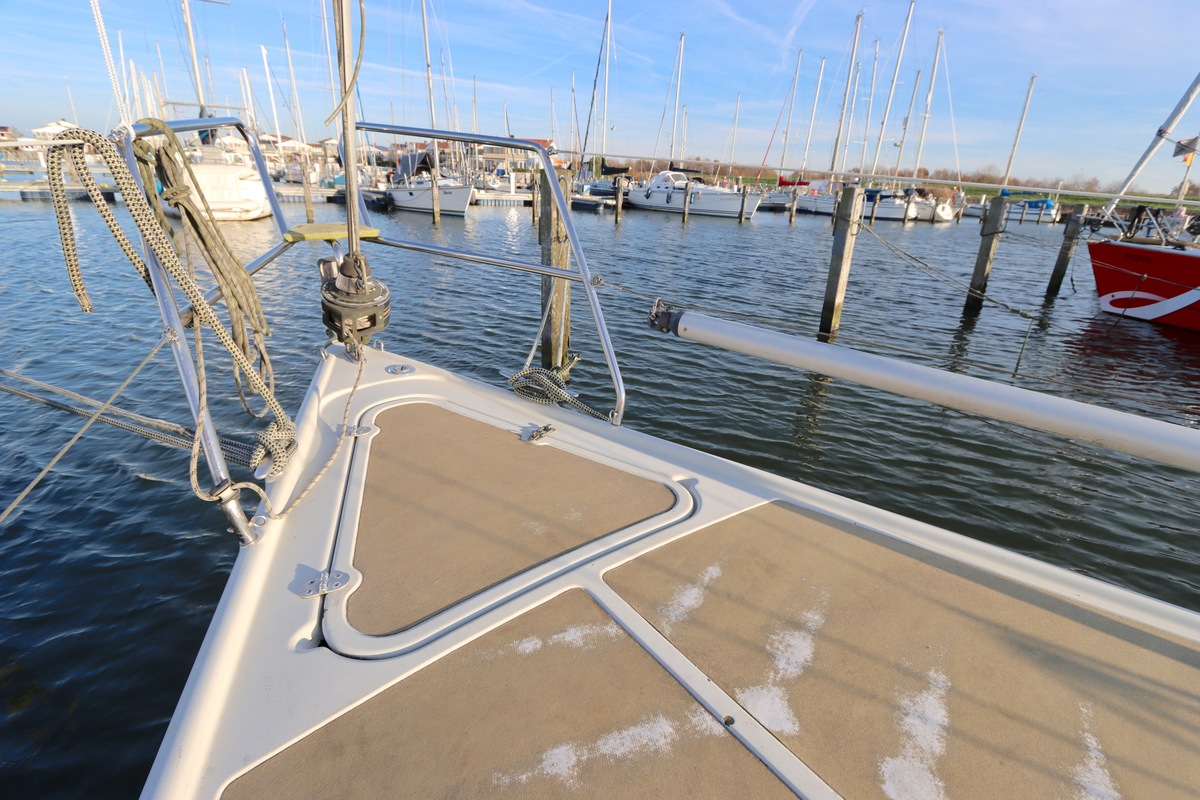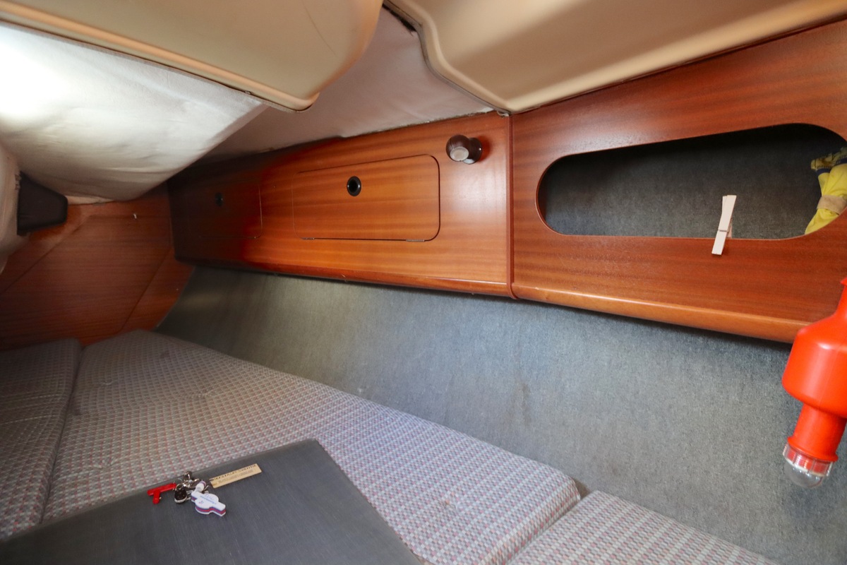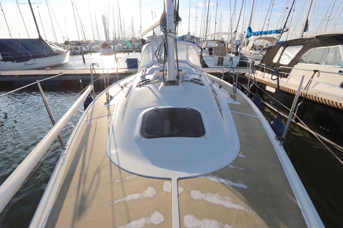 Die Dehler 31 ist eine liebevoll gepflegte und wunderbar segelnde Yacht aus dritter Hand. Das Schiff wurde offensichtlich mit Sorgfalt behandelt. 2017 wurden Mast, Baum und stehendes Gut erneuert und die Cockpitsitze mit neuem Teakholz bezogen.