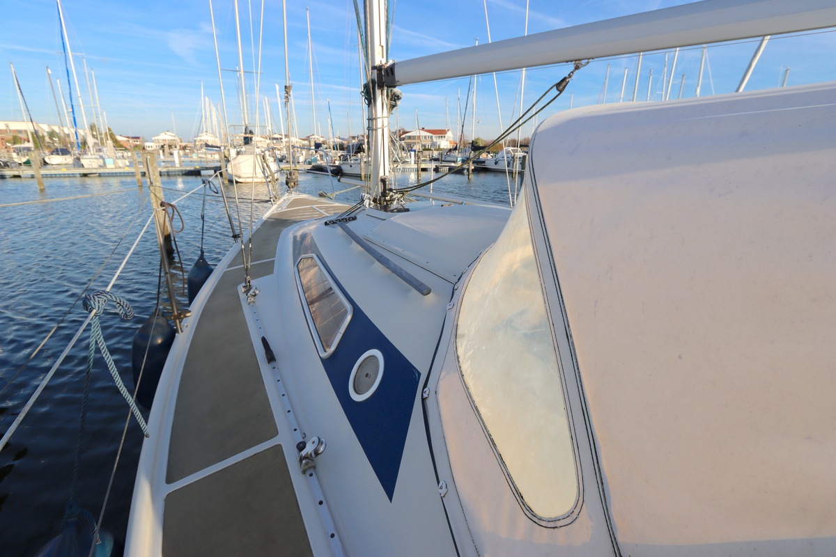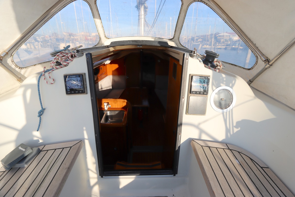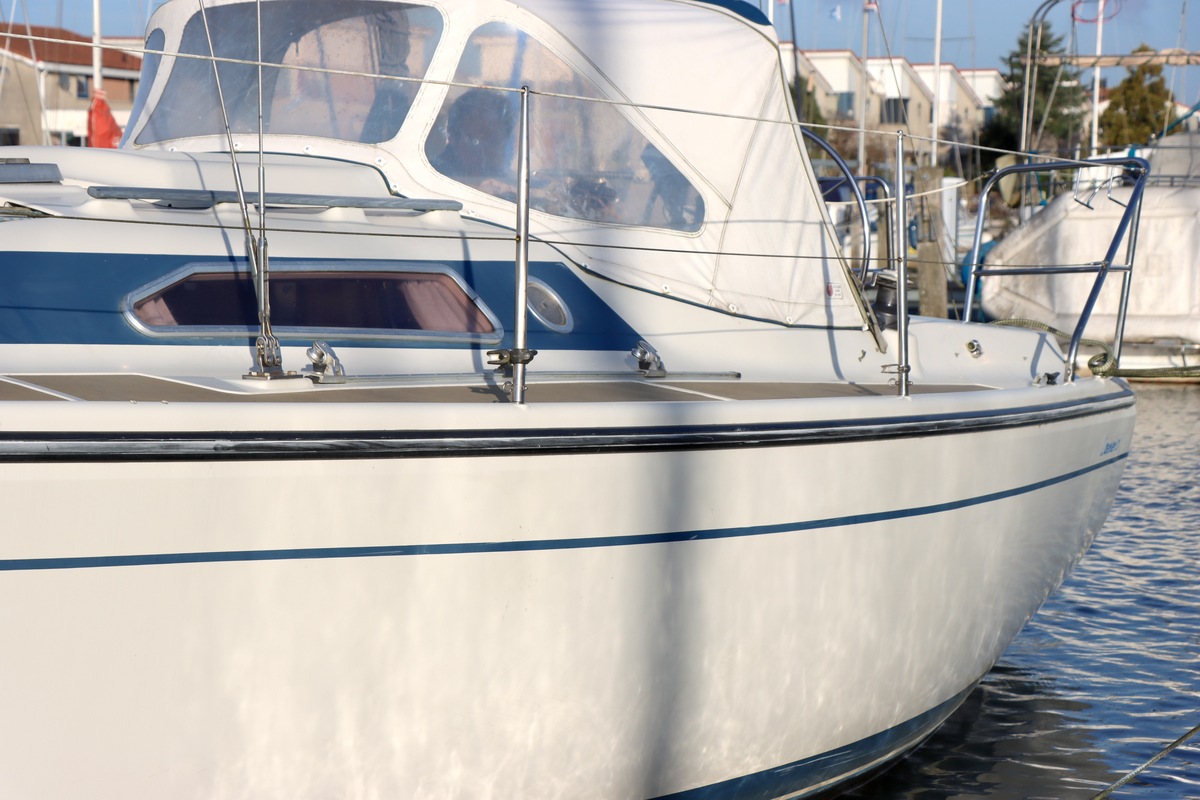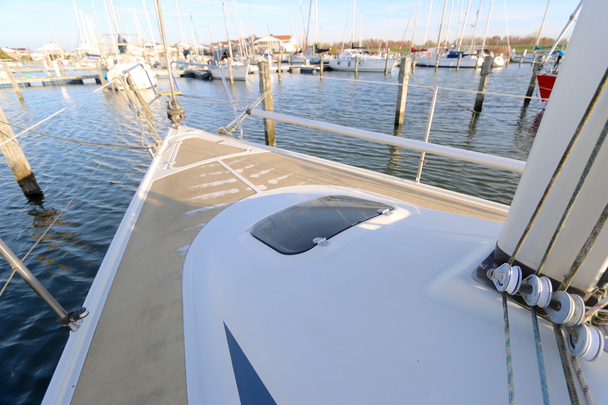Die Dehler 31 ist eine liebevoll gepflegte und wunderbar segelnde Yacht aus dritter Hand. Das Schiff wurde offensichtlich mit Sorgfalt behandelt. 2017 wurden Mast, Baum und stehendes Gut erneuert und die Cockpitsitze mit neuem Teakholz bezogen.