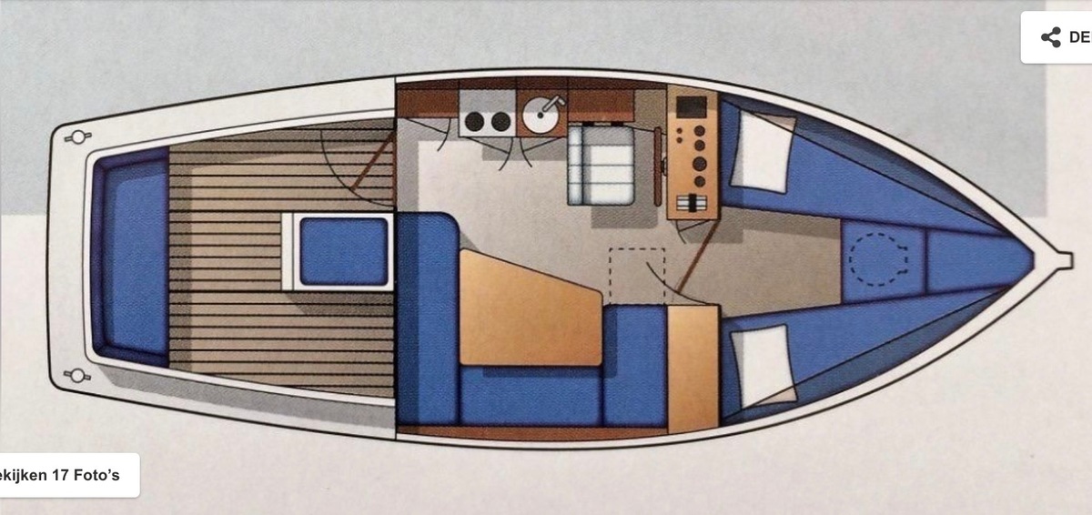 Salon, für Kabine mit 2 Kojen, Cockpit