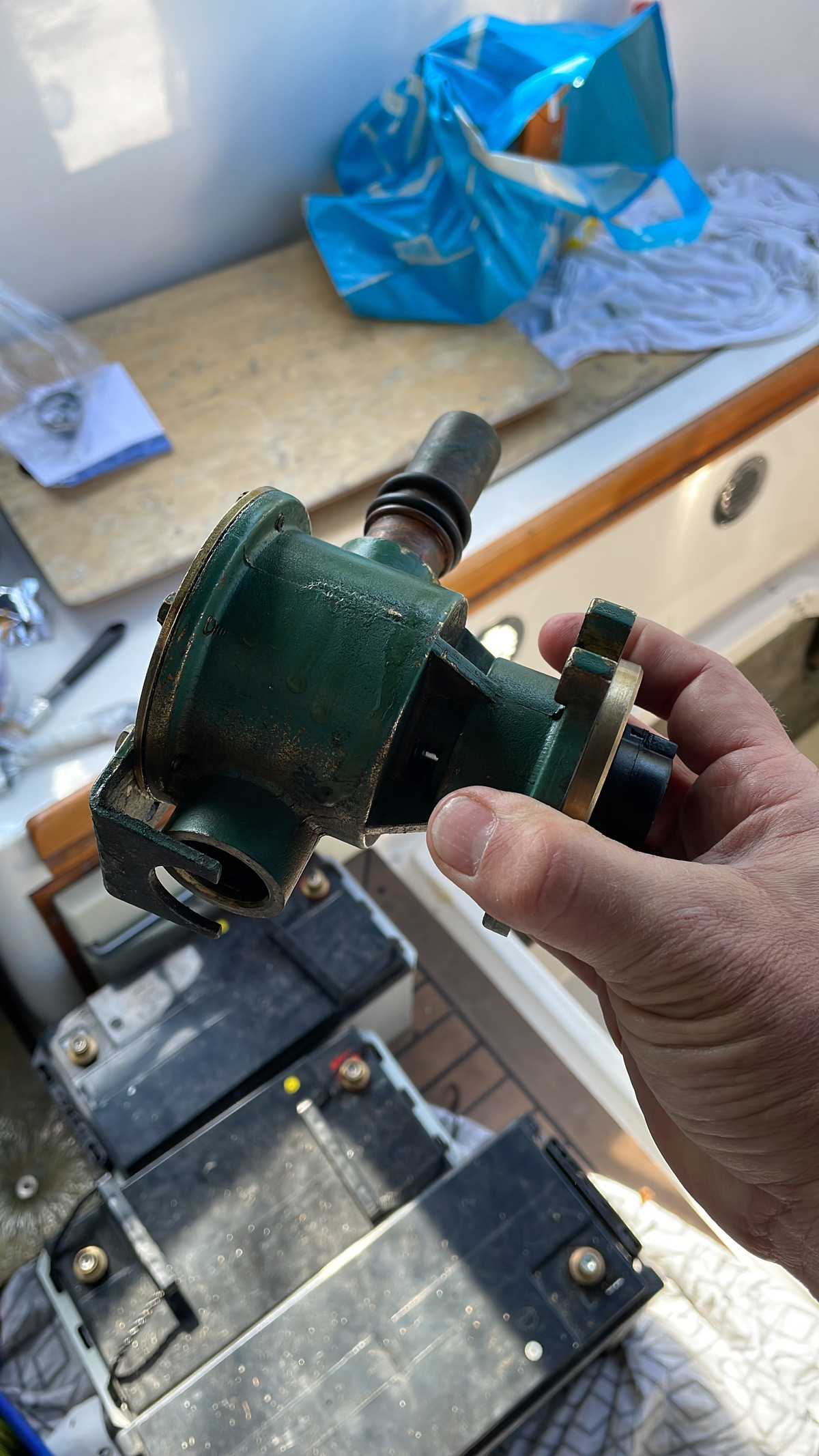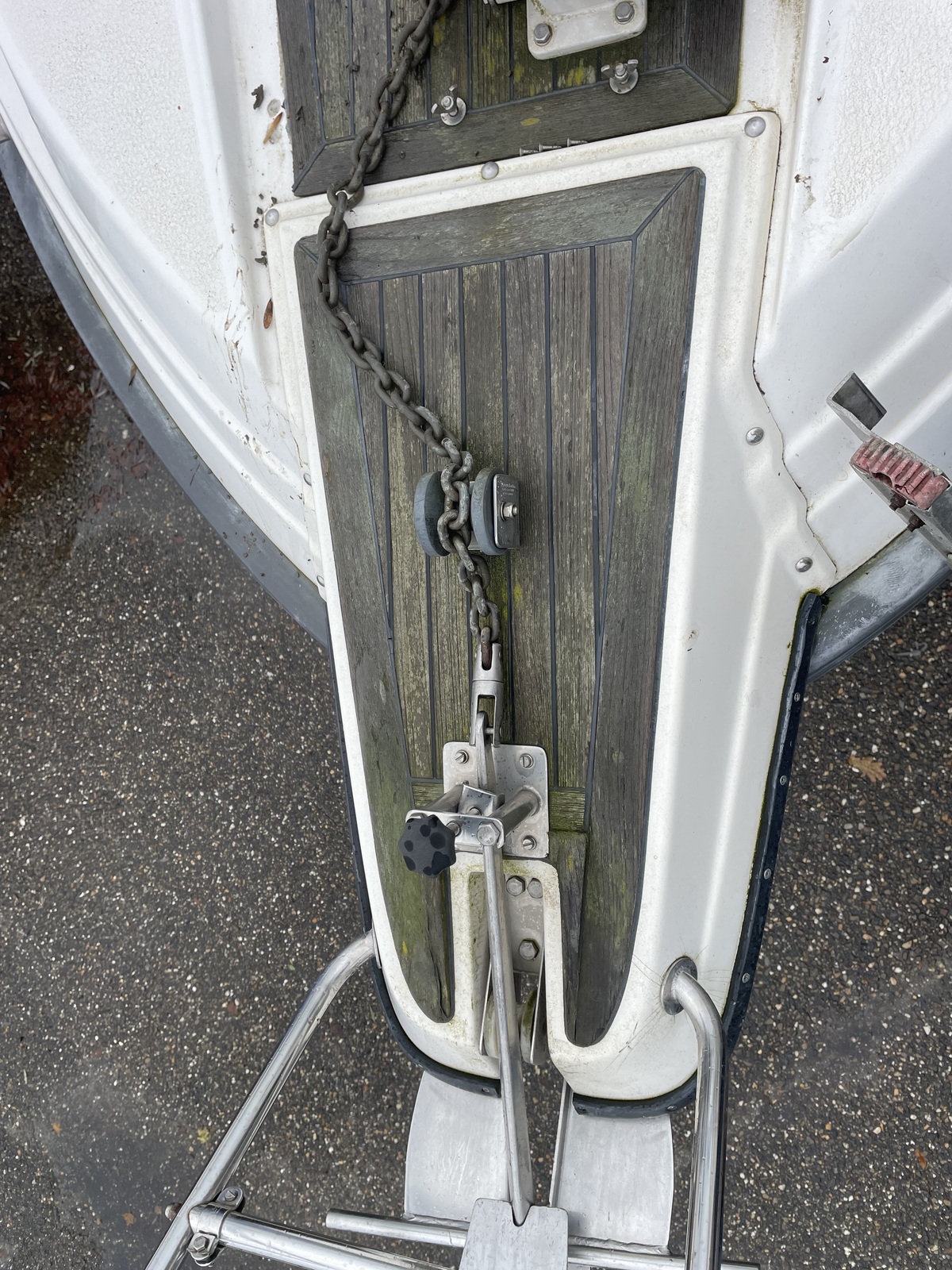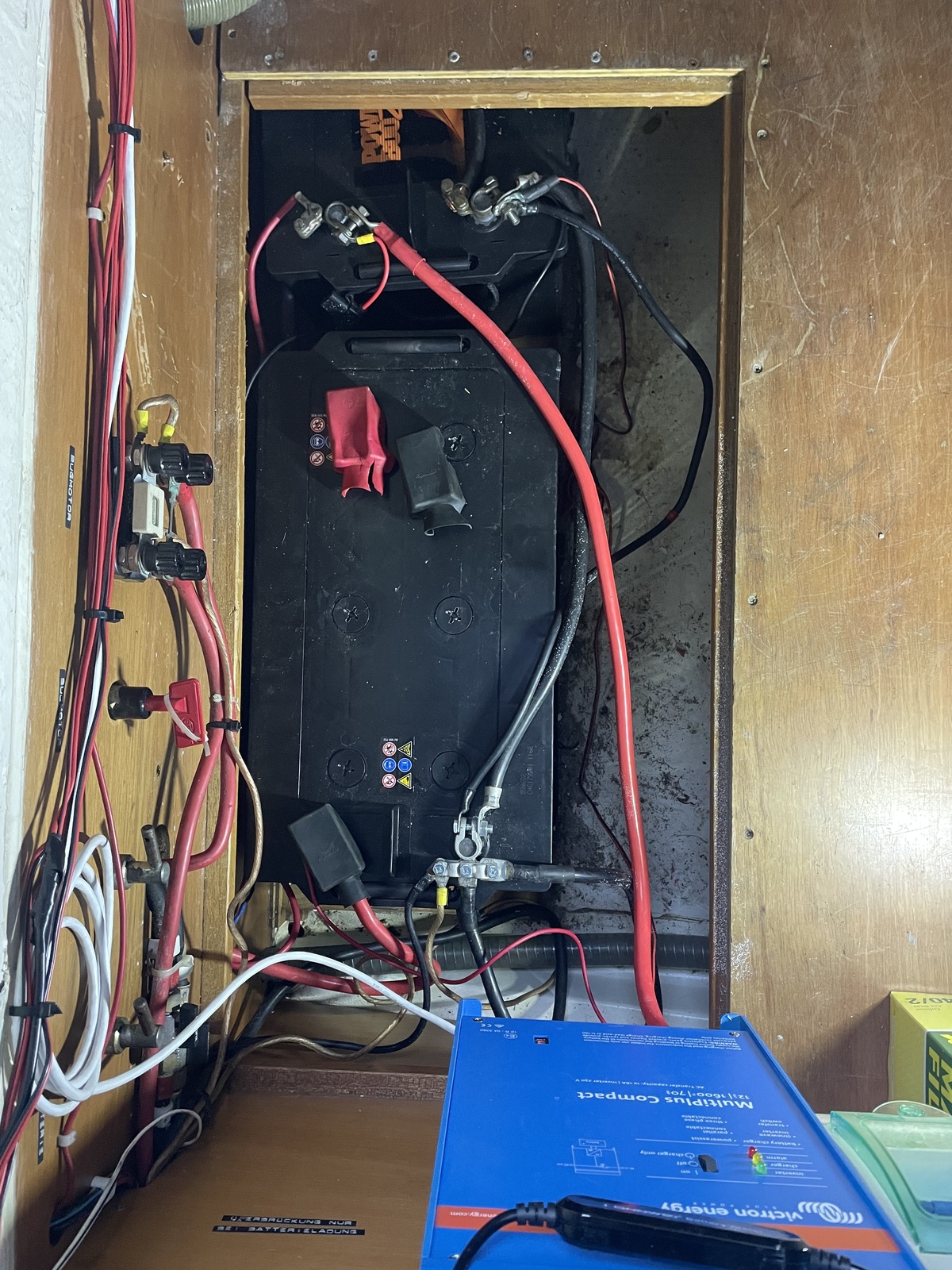 Neue 220-Ampere-Batterie. Ankerwinde überholt und mit einer 50-Ampere-Sicherung und AB ausgestattet.