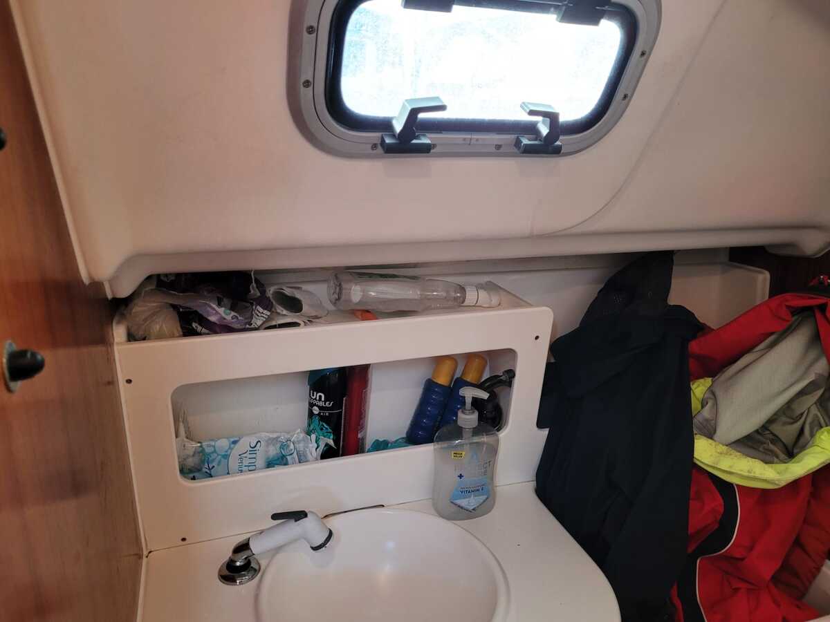 Der Salon verfügt über einen gemütlichen Essbereich, moderne Polstermöbel und viel Stauraum. Die Kombüse ist praktisch eingerichtet mit einem 2-Brenner Gasherd, Spüle mit Druckwassersystem, und ein elektrischer KühlschrankDarüber hinaus gibt es eine manuelle Toilette, und das Schiff ist ausgestattet mit einem Druckwasserinstallation en 50 Liter Wassertank.