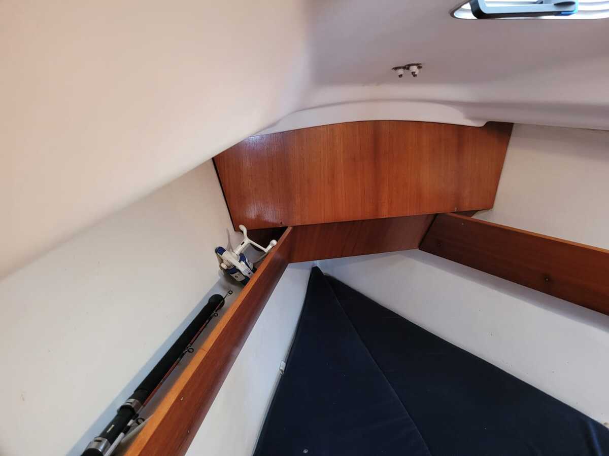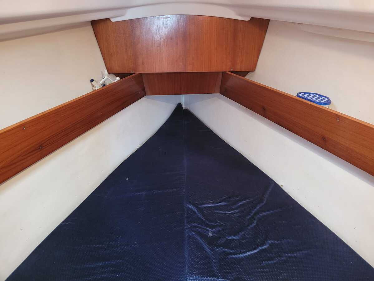 Im Inneren bietet die Sun Odyssey 29.2 einen überraschend geräumigen und hellen Innenraum mit Stehhöhe von 1,75 mDas Boot hat vier feste Schlafplätze (Vorder- und Achterkabine) und zwei zusätzliche im Wohnzimmer, wodurch das Schiff für kleine Familien oder Paare geeignet ist.