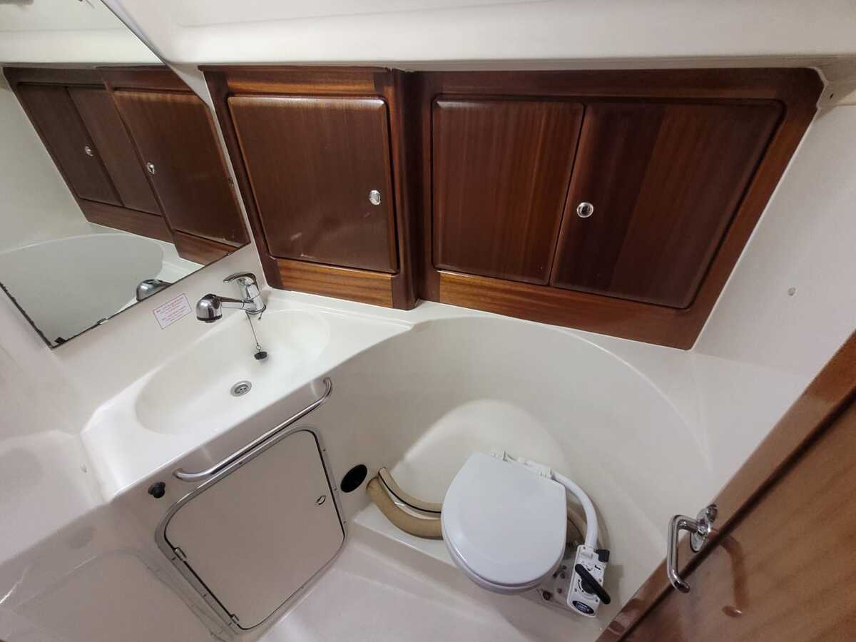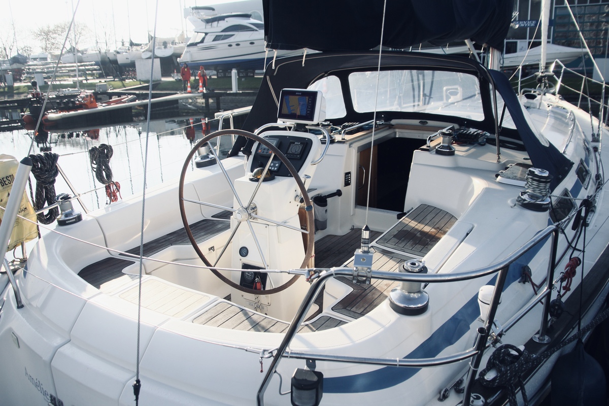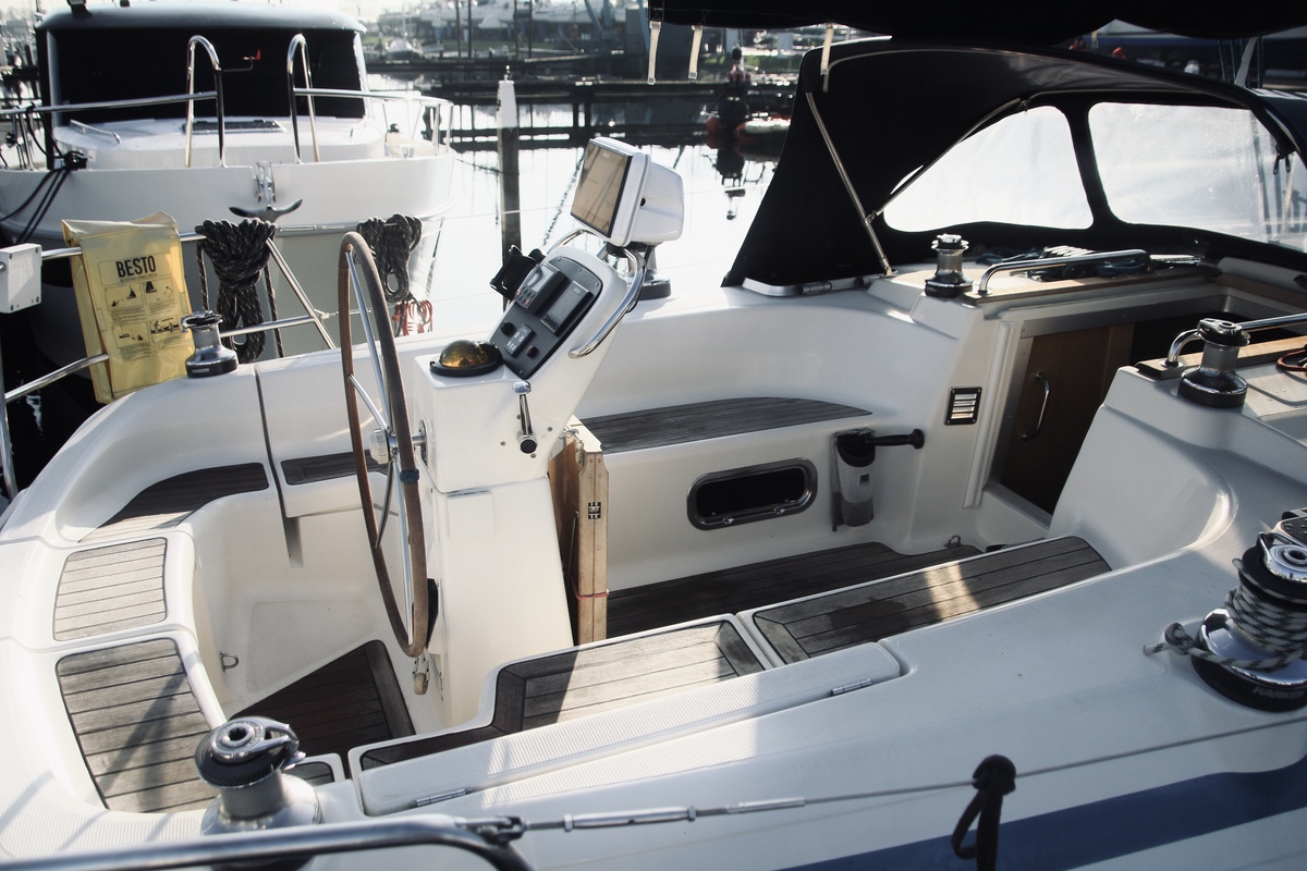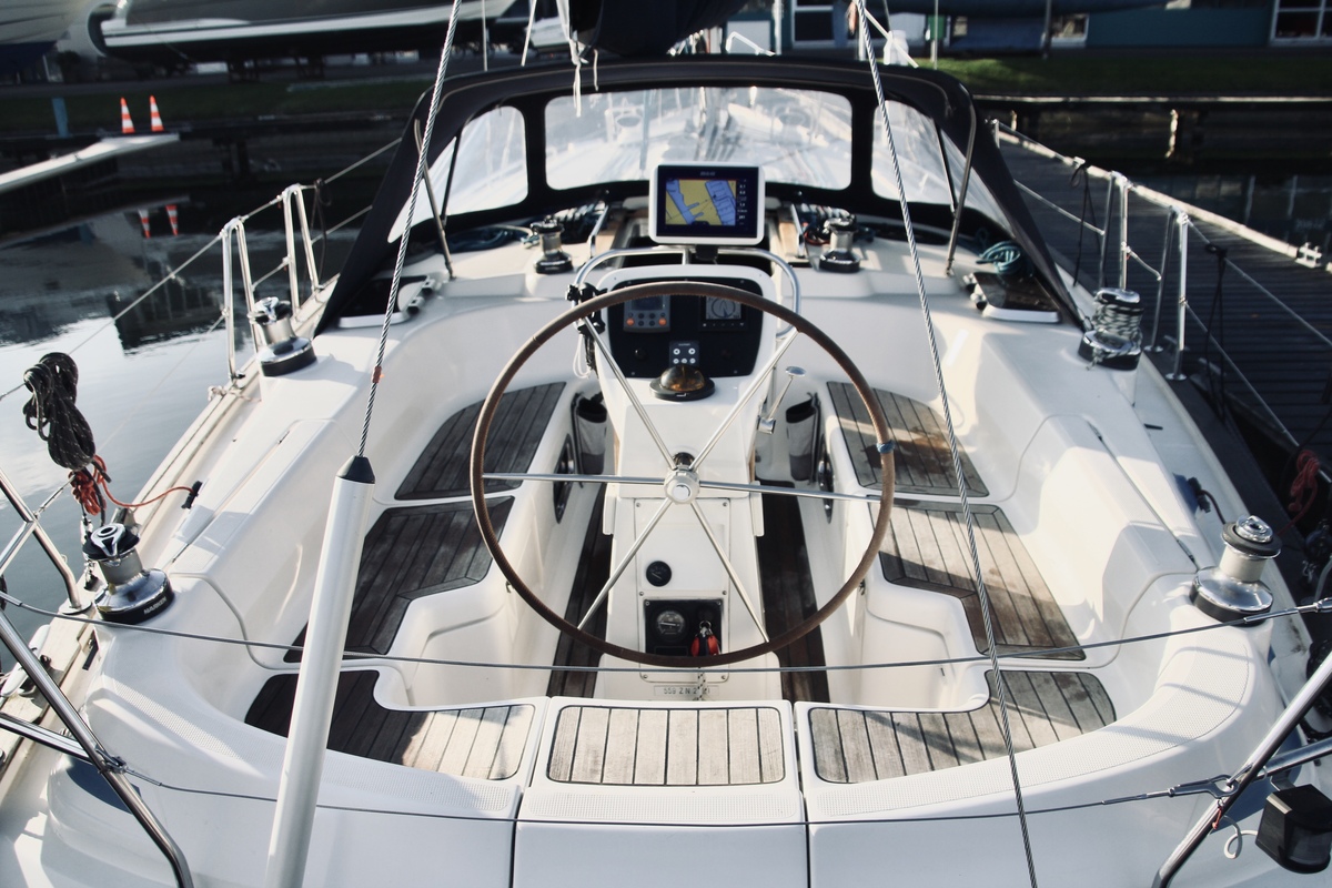 Das Außendeck und das Cockpit sind geräumig. Ein komfortables, großes Steuerrad, großzügige Sitzgelegenheiten und ein Teak-Cockpittisch laden zu entspanntem Segeln oder geselligen Stunden mit Familie und Freunden ein. Die Yacht verfügt über eine Badeplattform mit Leiter, eine elektrische Ankerwinde und einen 20 kg schweren Rocna-Anker mit 35 Metern Kette. Das Teak-Cockpitdeck (2023) verleiht der Yacht einen Hauch von Luxus, während das selbstlenzende Cockpit für Komfort und Sicherheit sorgt.
